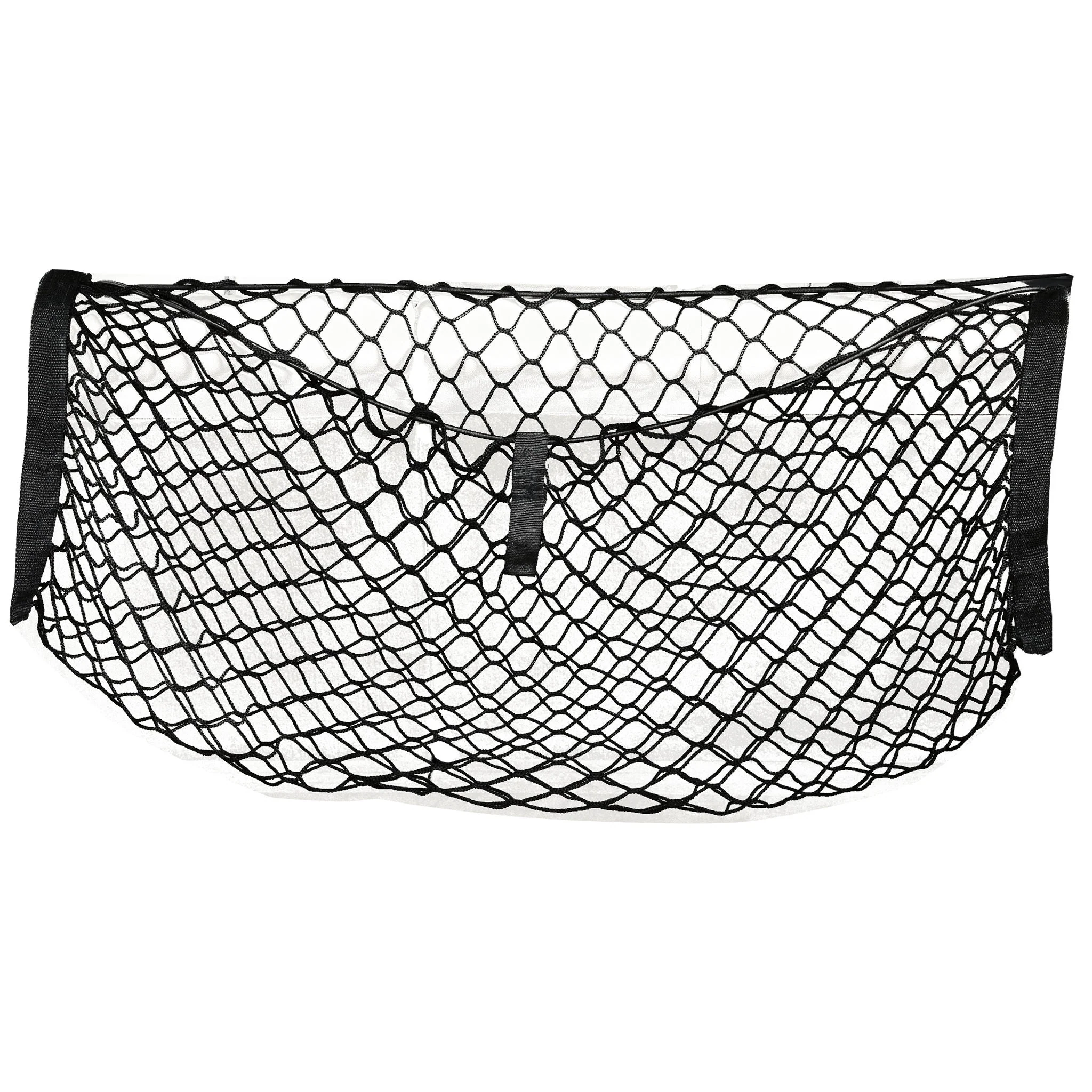 Carry cargo gear in a stretchable cargo net that holds sports equipment, tools and emergency items, then packs down to a compact 4"x7"x2" size to fit in consoles and glove compartments when not in use. Elastic opening has a pull down loop for easy access and reinforced, webbed sides for added strength. Attaches to back seat headrest posts with swivel clips.